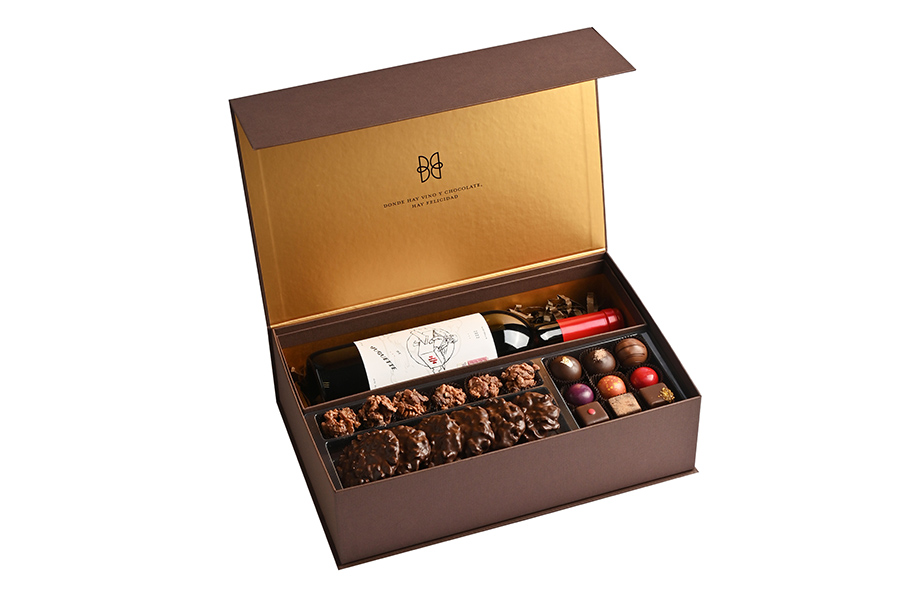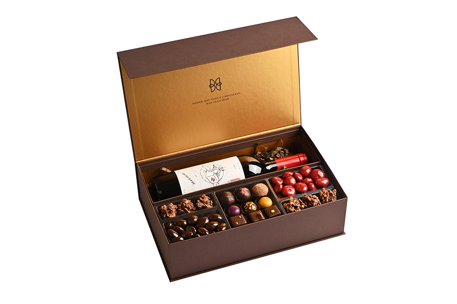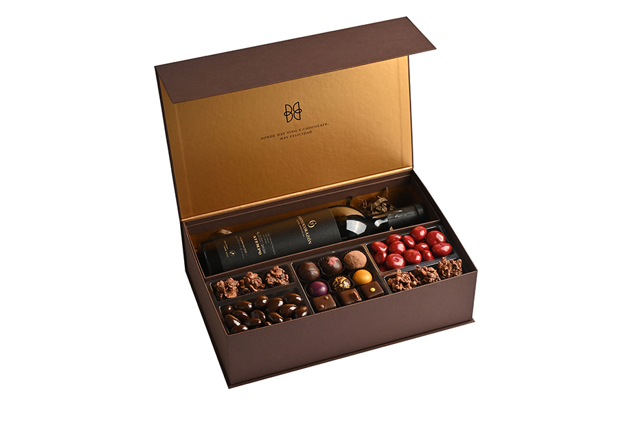 Una caja espectacular con dos opciones de surtido de chocolates mas tu elección de tinto. El maridaje perfecto y un regalo muy gourmet. Puedes elegir la opción sin botella (BYOW) para tu ponerle cualquier otra que prefieras.